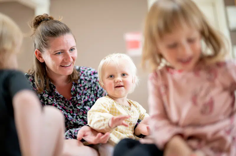 Forældre deltager sammen med sit barn i festlighederne. Der er små aktiviteter rundt på legepladsen, ligesom at julemanden kigger forbi.
